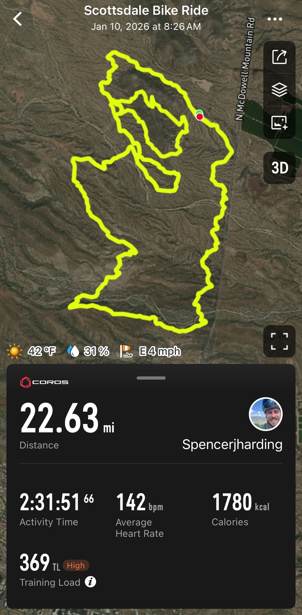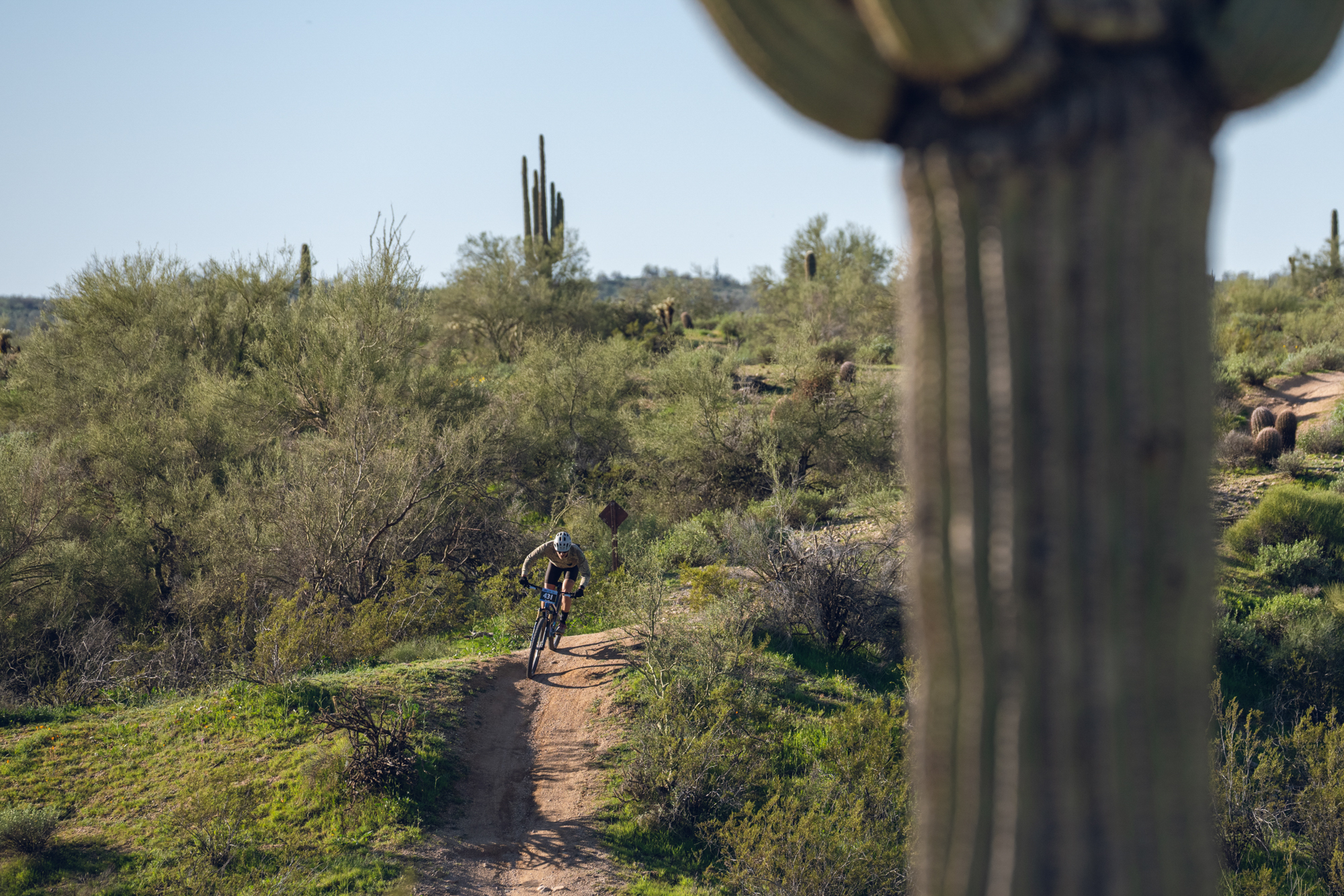I lined up with my category on a frigid morning in the McDowell Mountain Preserve. The pack launched off the start line and almost immediately formed into a paceline on singletrack, which was impressive to watch from the back, where another journalist and I had already settled. After about ten minutes, what I was doing could no longer be called racing. The remaining 20 miles of my “race” were ridden at the most spirited pace I could muster. I’ll share my smartwatch data below as proof that I was genuinely cooked by the end.