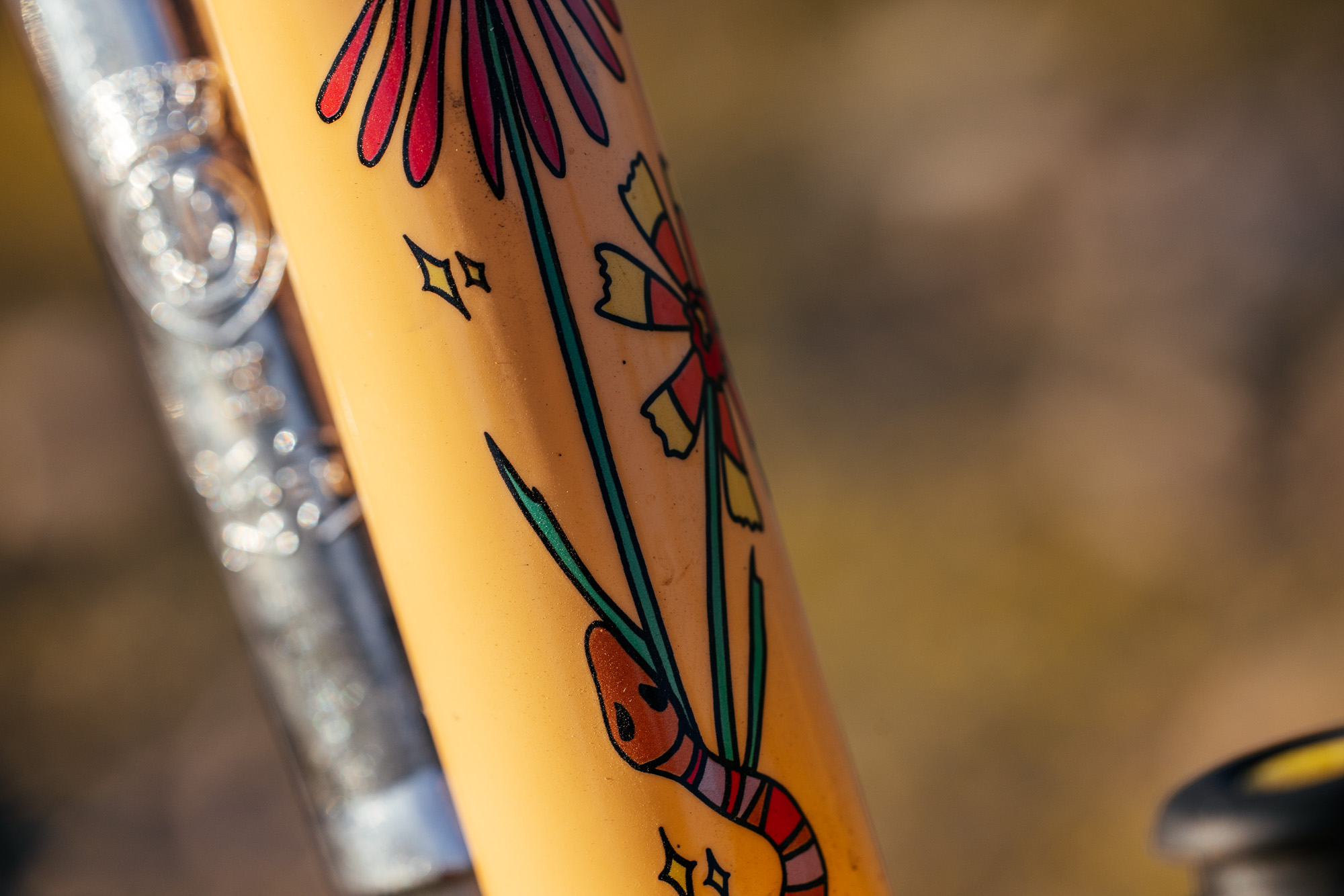 Like (most) all frames, these are handmade, one at a time, in a small factory in Taiwan. They’re made from tubing Matt and Garrett select, and the colors are designed by Cheech, who often reaches out to other artists to design the graphics. Many humans go into making these frames, and it shows. Matt once joked with me that his frame dealer in Taiwan was astonished that he wanted a different cast head badge for every frame in the Crust catalog, joking how it was “going to be very expensive!”