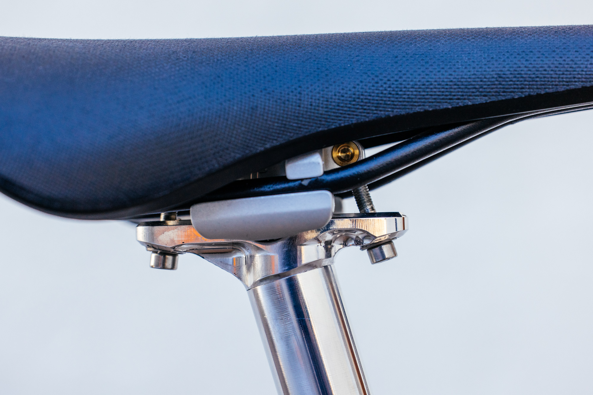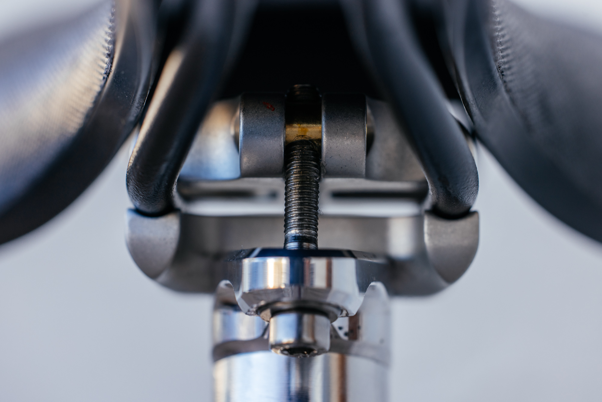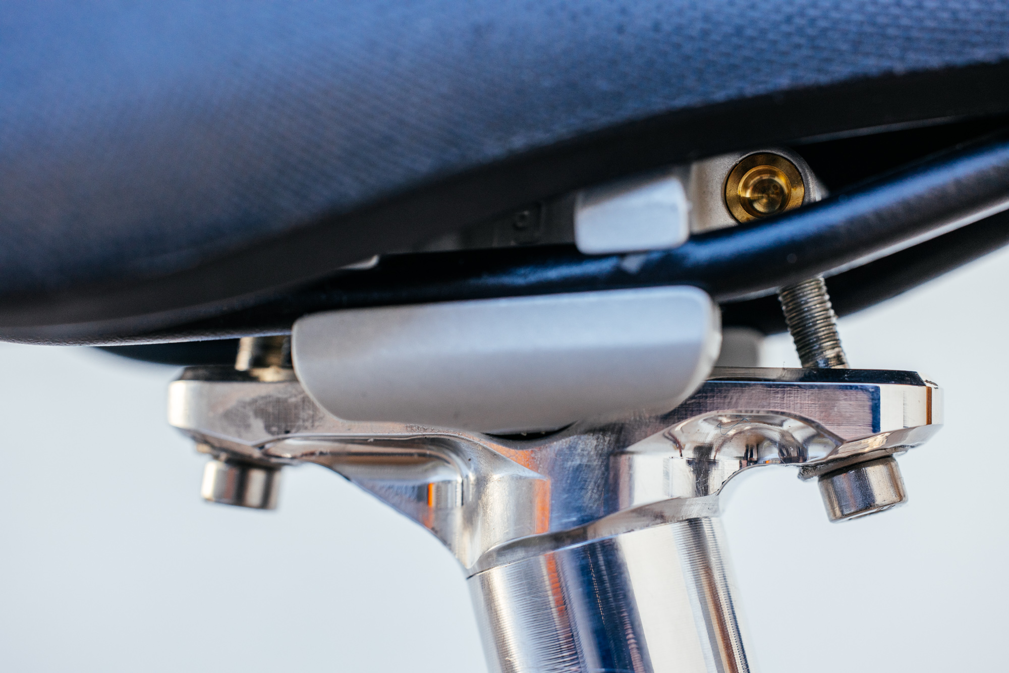 The first order of business was to space the bolts far enough away from the post that you can easily adjust them with a multi-tool on the side of the trail, or a torque wrench in the shop. Because the Tall and Elegant seatpost uses two bolts, seatpost rail slippage is completely eliminated.