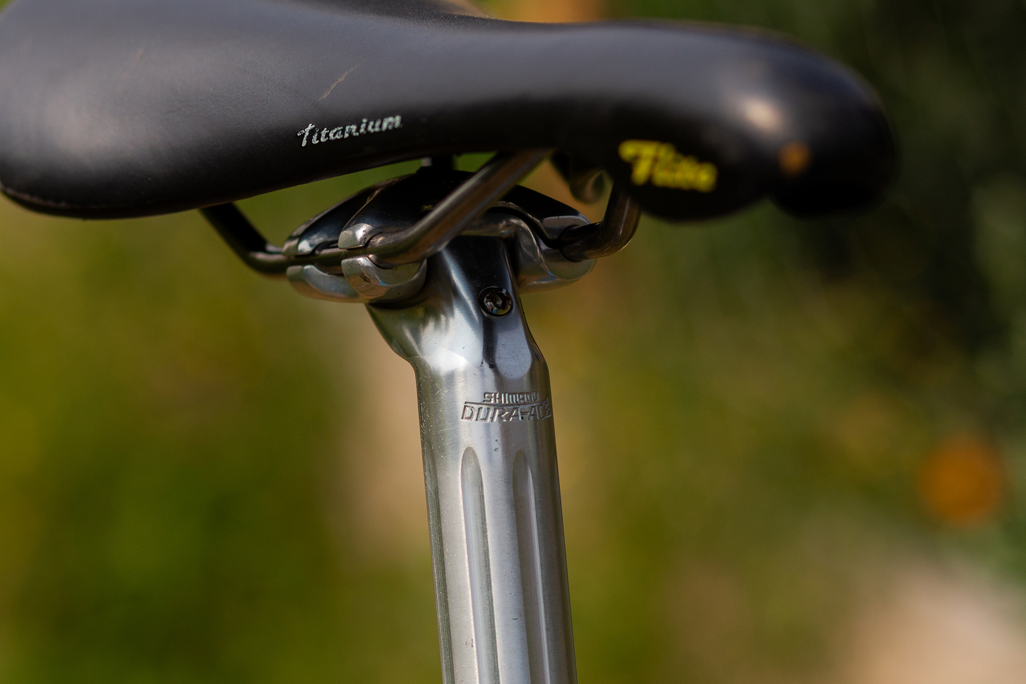 The build is great too! I don’t know if Dura-Ace 7400 is my favourite groupset because of this bike, or rather that I like this bike so much because it has Dura-Ace 7400, but they fit together perfectly. The satiny-smooth polish is so perfect, the crankset is beautiful, and it shifts wonderfully. I chose to modernize a few components here and there while keeping as much of the original spec as I could. I love a Selle Italia Flite, so that had to happen.