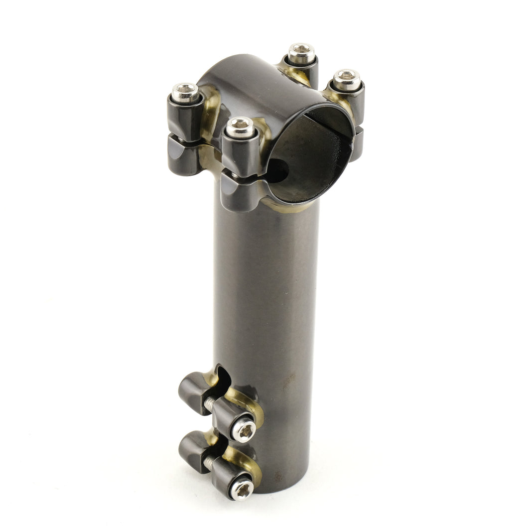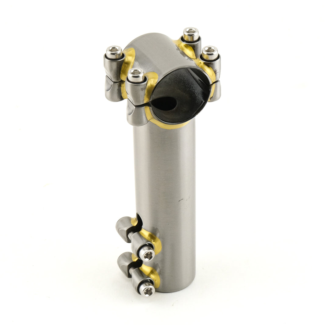 These brazed chromoloy stems are made in Taiwan and are covered in ultra-durable Cerakote instead of paint or traditional powdercoating. They’re built to last, though, like the alloy Creemee, they weren’t meant for aggressive mountain biking. Nor were they meant for carbon bars or steerer tubes, but that wouldn’t suit their vibe anyway.