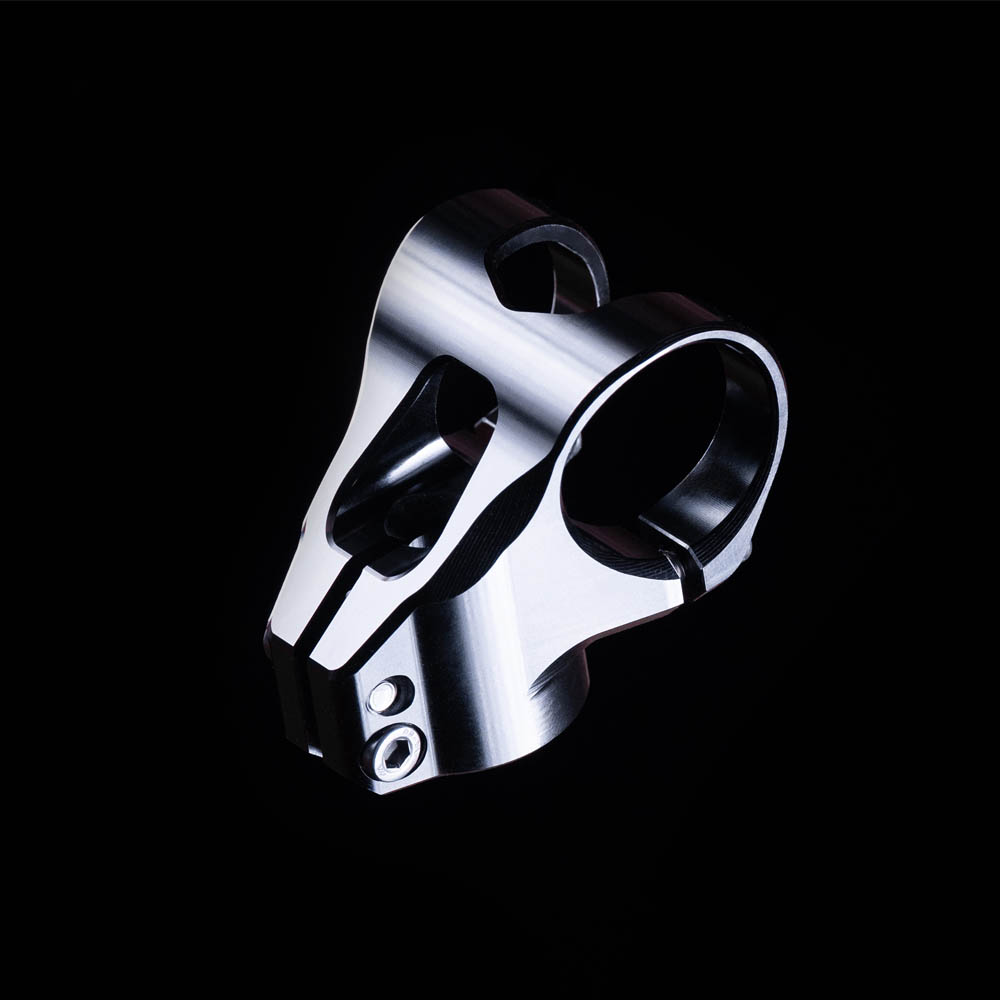 Made in Freiburg, Germany, the Intend Grace DD is the most “conservative” stem on this list. Its 25mm length is only a few mm shorter than you can get with a traditional stem. But it also adds 38mm of rise and only requires 18mm of steerer tube. It’s a sleek option for those who want to increase their stack height without swapping handlebars, but have run out of room.